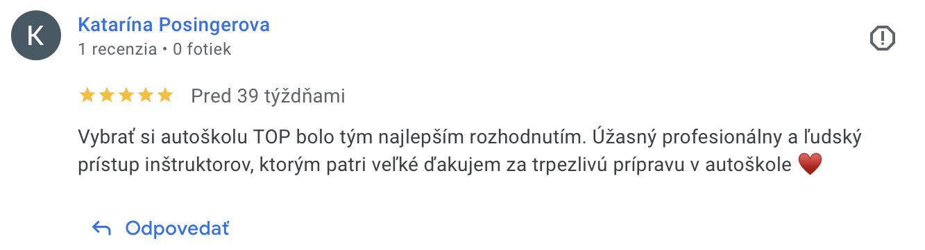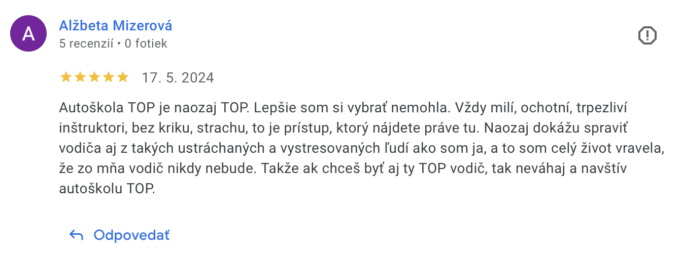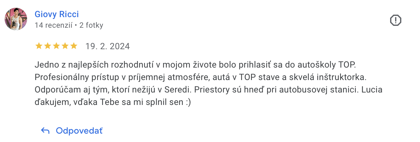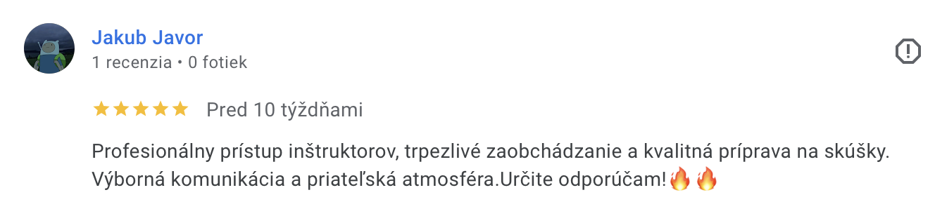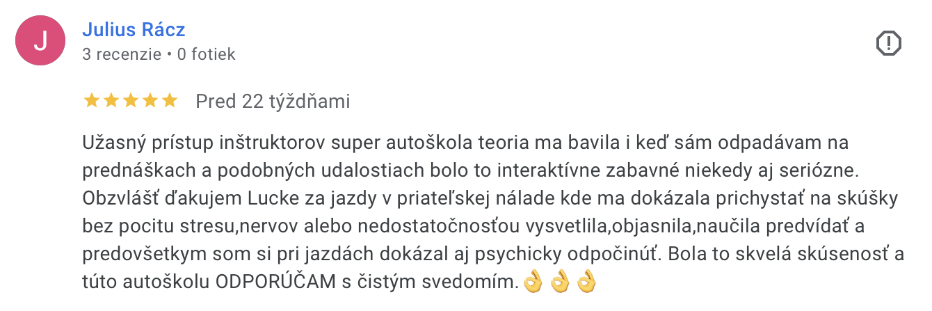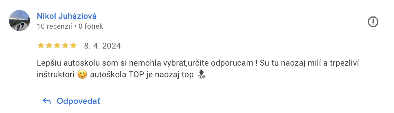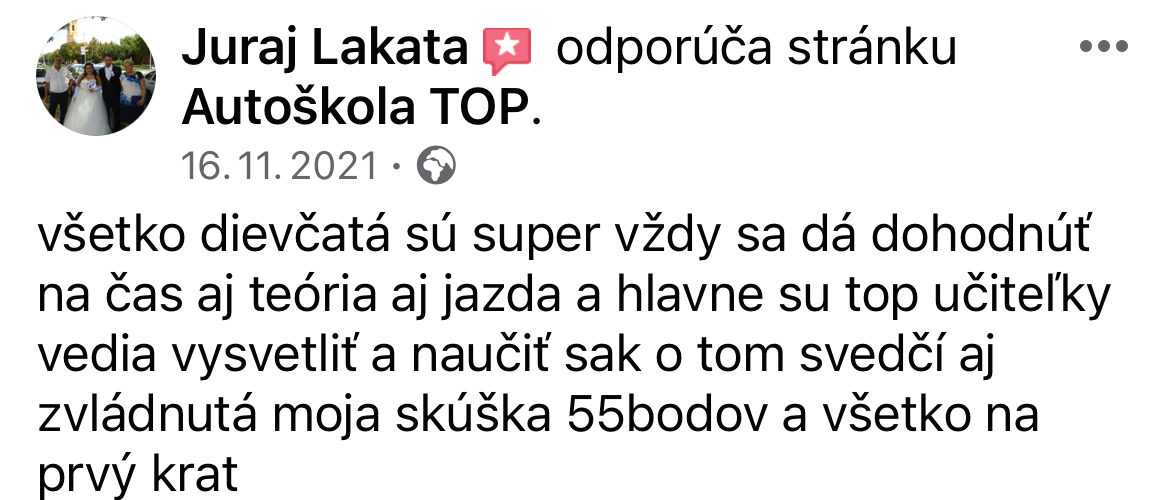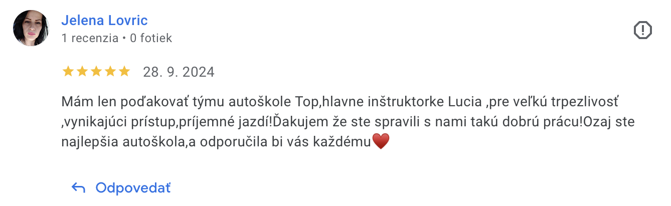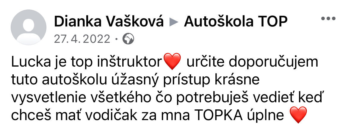 Naši absolventi neustále vyjadrujú svoje nadšenie a spokojnosť s Autoškolou Top! Sme hrdí na ich pozitívne recenzie, ktoré svedčia o našej kvalitnej príprave na ich cestu. S profesionálnymi inštruktormi, modernými vozidlami a osobným prístupom sme spoločne pomohli našim študentom získať dôveru za volantom a úspešne dosiahnuť vodičský preukaz. Pridajte sa k spokojnej komunite našich absolventov a zažite výnimočnú Autoškolu Top!